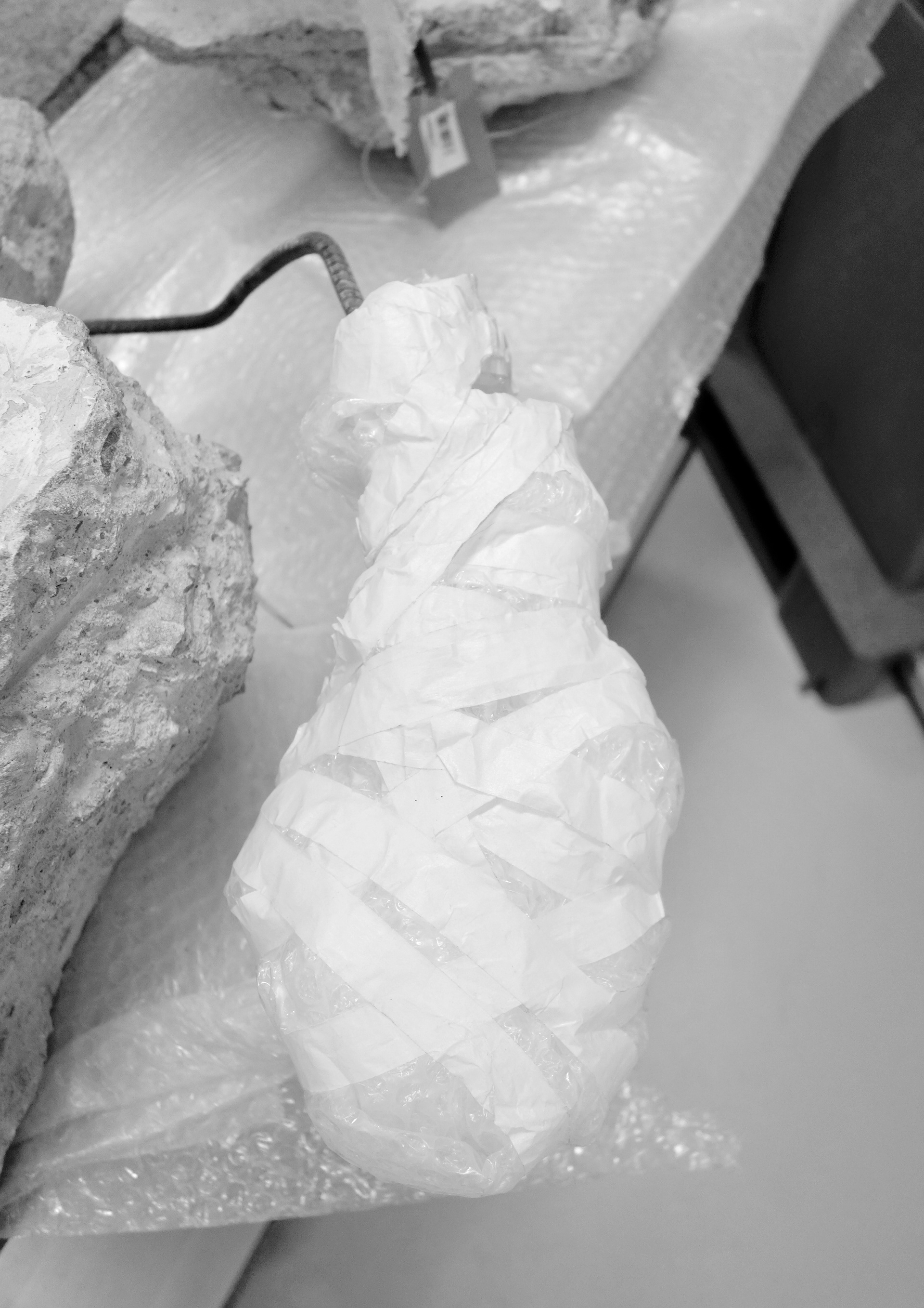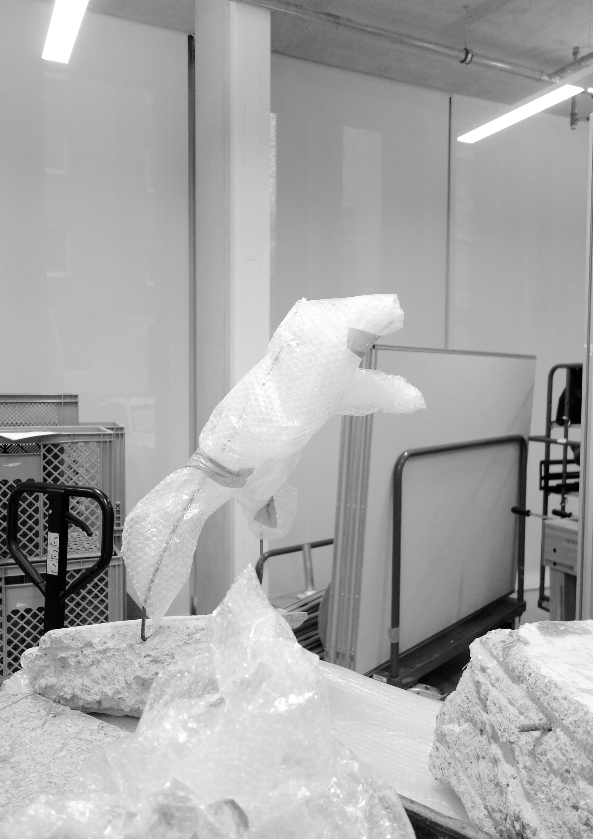 In my work “Appeal/Momentum, 2024”, I deal with the collapsed site of the historic archive of the city of Cologne. Over the past 10 years( 2014-2024), I have photographed various appearances of this hole, architectural interim solutions, investigation structures, soil freezing, shielding and pipelines. A concrete basin in which algae grow and ducks swim. The documentary images of the collapse site are complemented by photos and short videos from the new city archive, where debris and interiors of the former building, so-called salvage objects, are stored.
