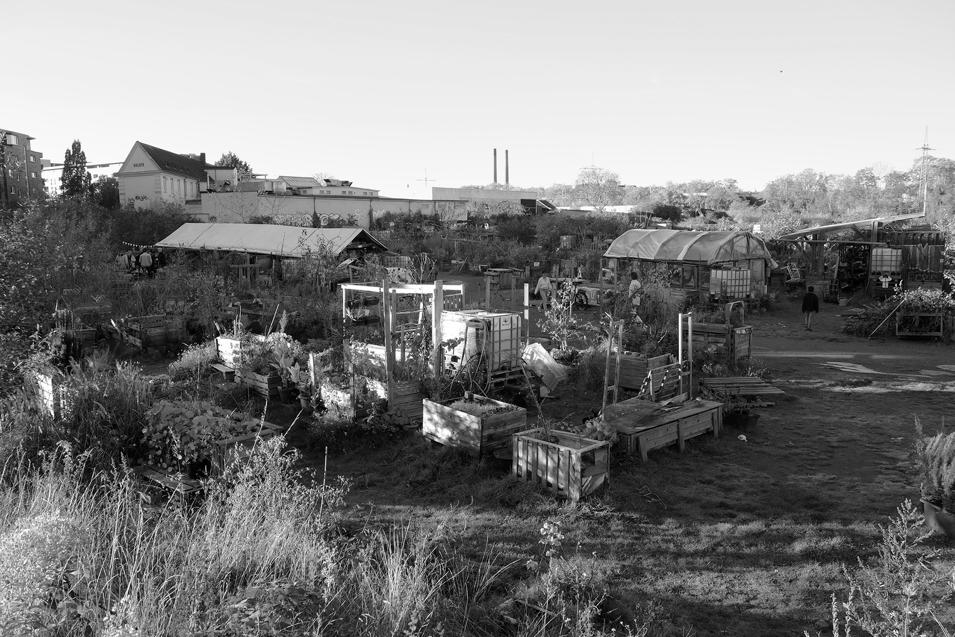 Photographs of the slow deconstruction of the community garden NeuLand in 2022. Part of the exhibition Diaspores – Field studies in the community garden.