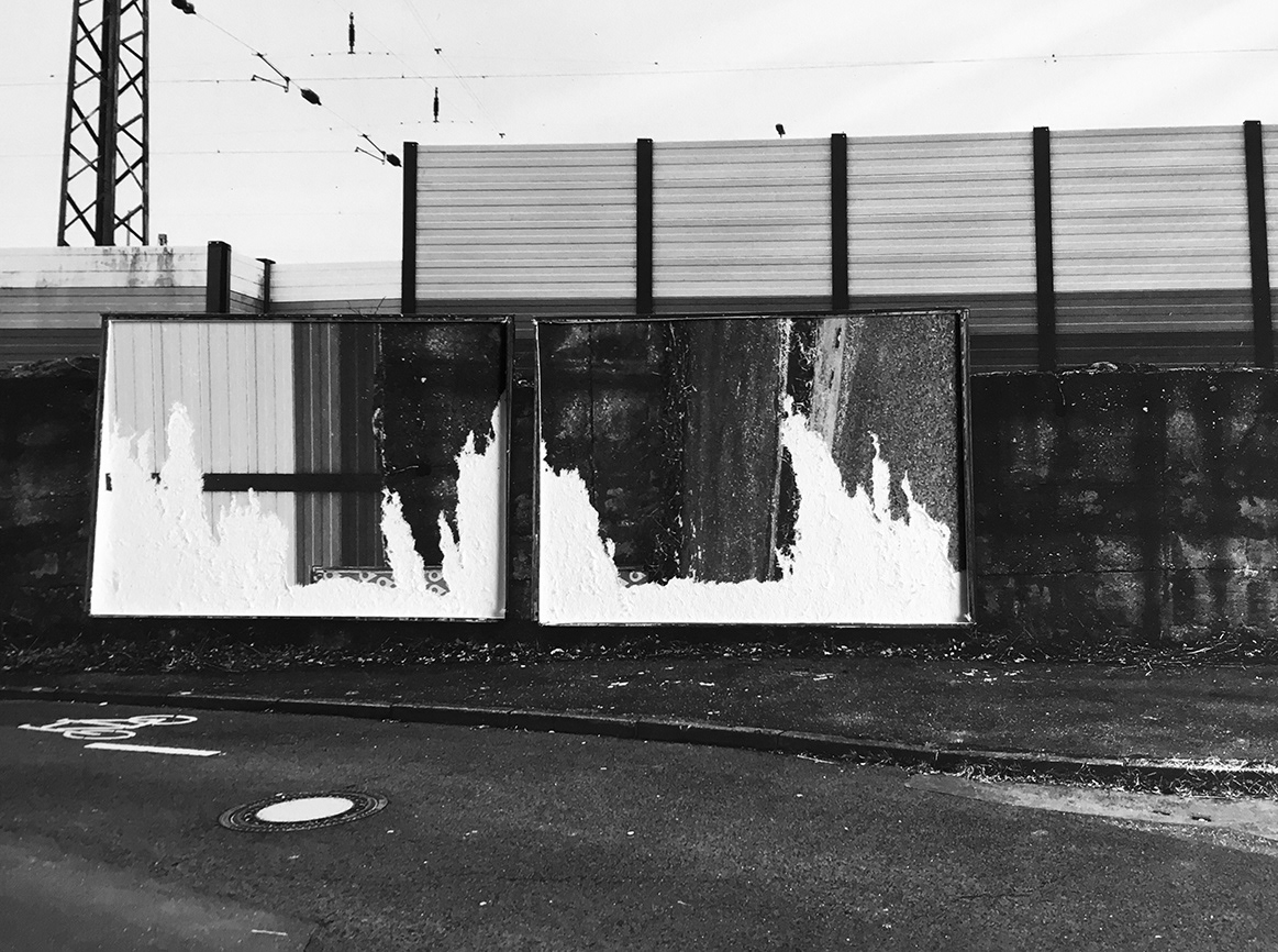 In January of 2019 news circulated on the web that a Russian start-up was working on plans to place advertising in space. Now that advertising pillars and paper billboards are being replaced more and more by digital advertising spaces, is this the next logical step or a crackpot idea? Stefanie Pluta has been working for many years with advertising in public space, as a surface, as a fleeting place, as an image, as a message. On expired, discarded billboards, she uncovers layers, isolates motifs, and thus creates new works. In an ongoing series of black-and-white photographs, the artist also captures flags, banners, or packaging whose original messages she removes through subtle interventions. The principle of décollage transfers from her works with affiches to public space. And shows us how valuable a close look at the supposedly familiar environment is. Text: Leonie Pfennig