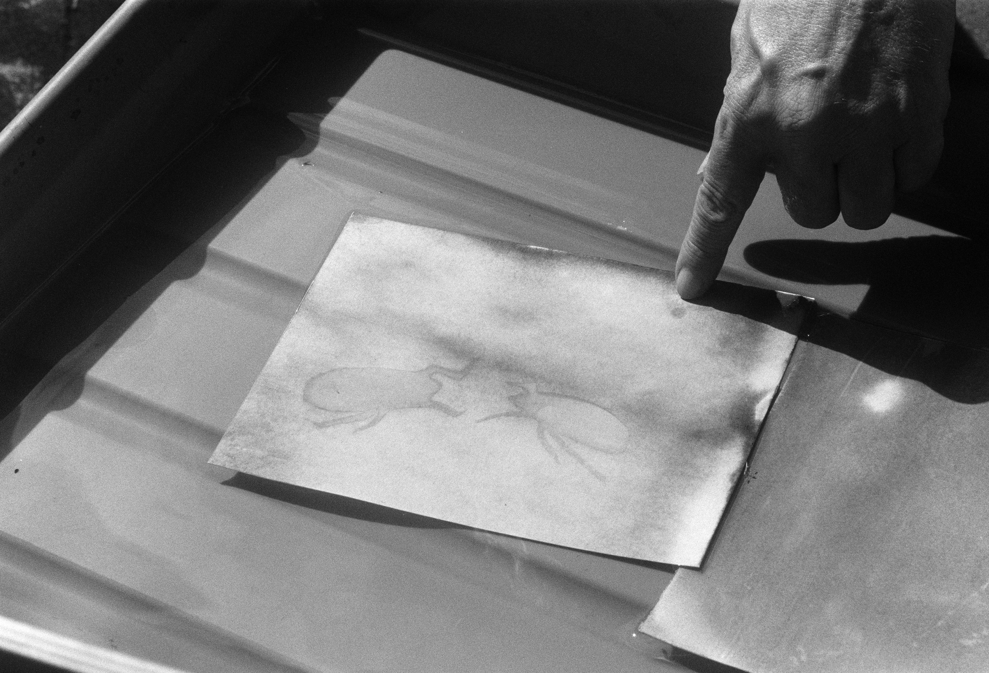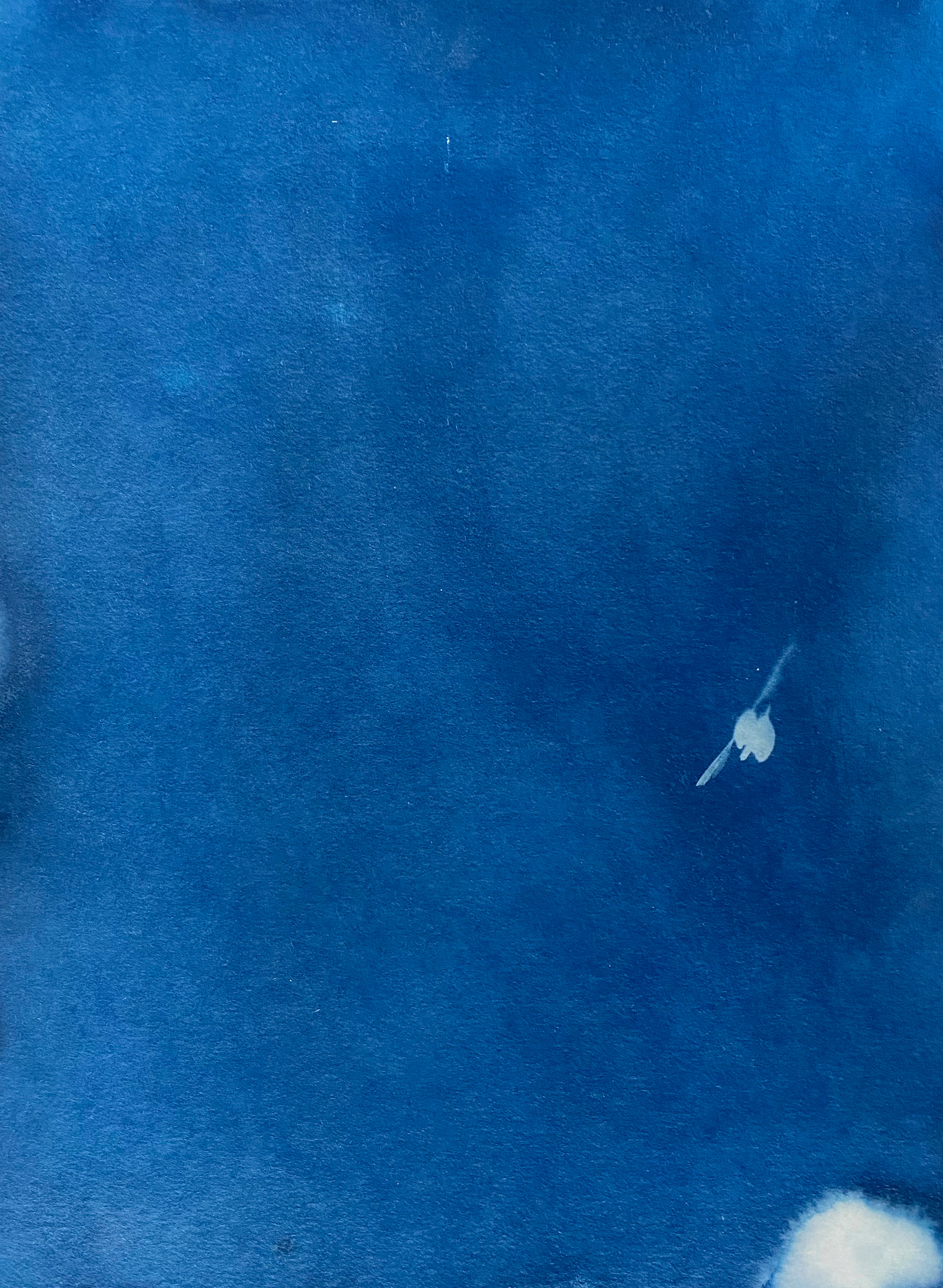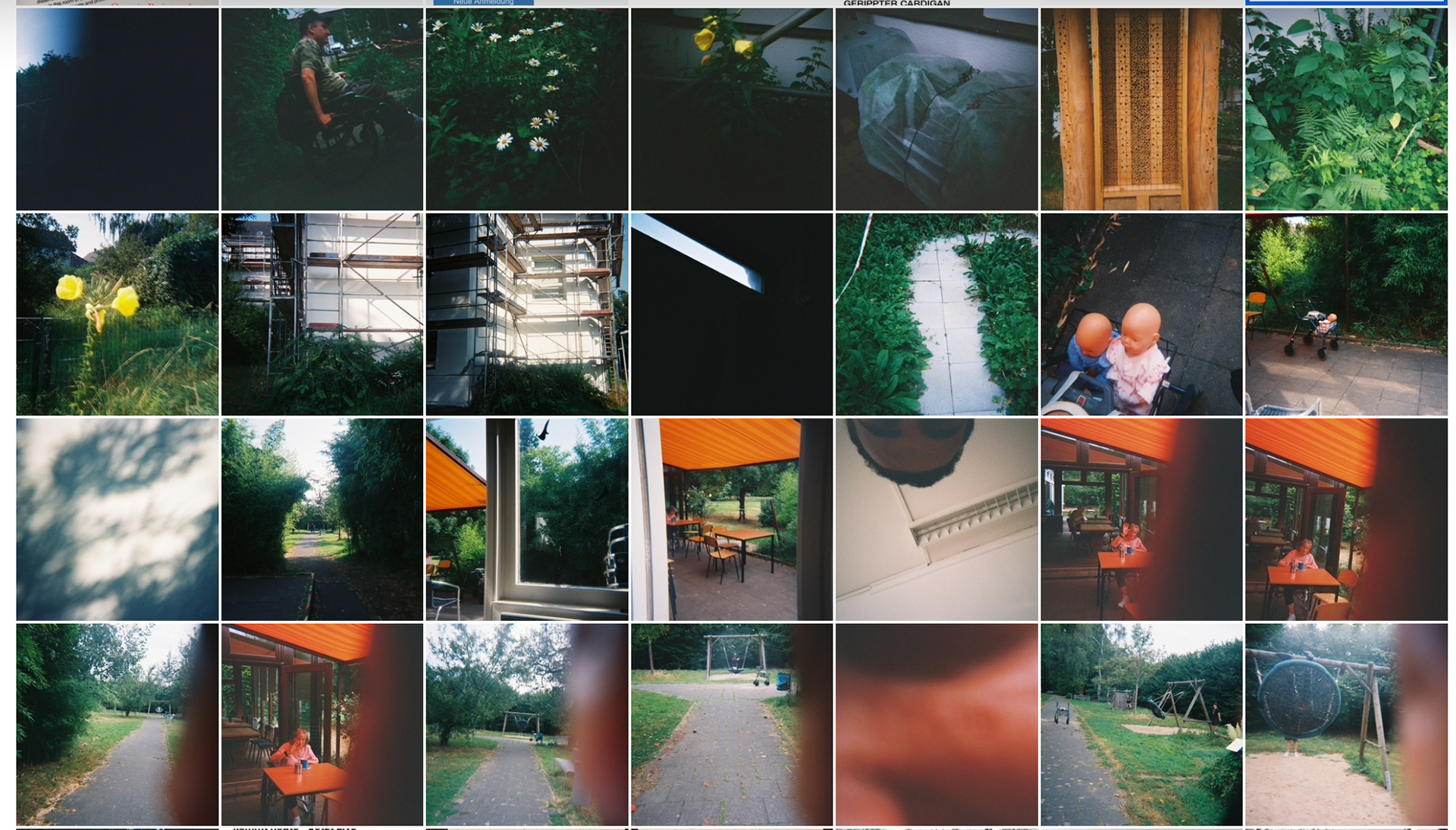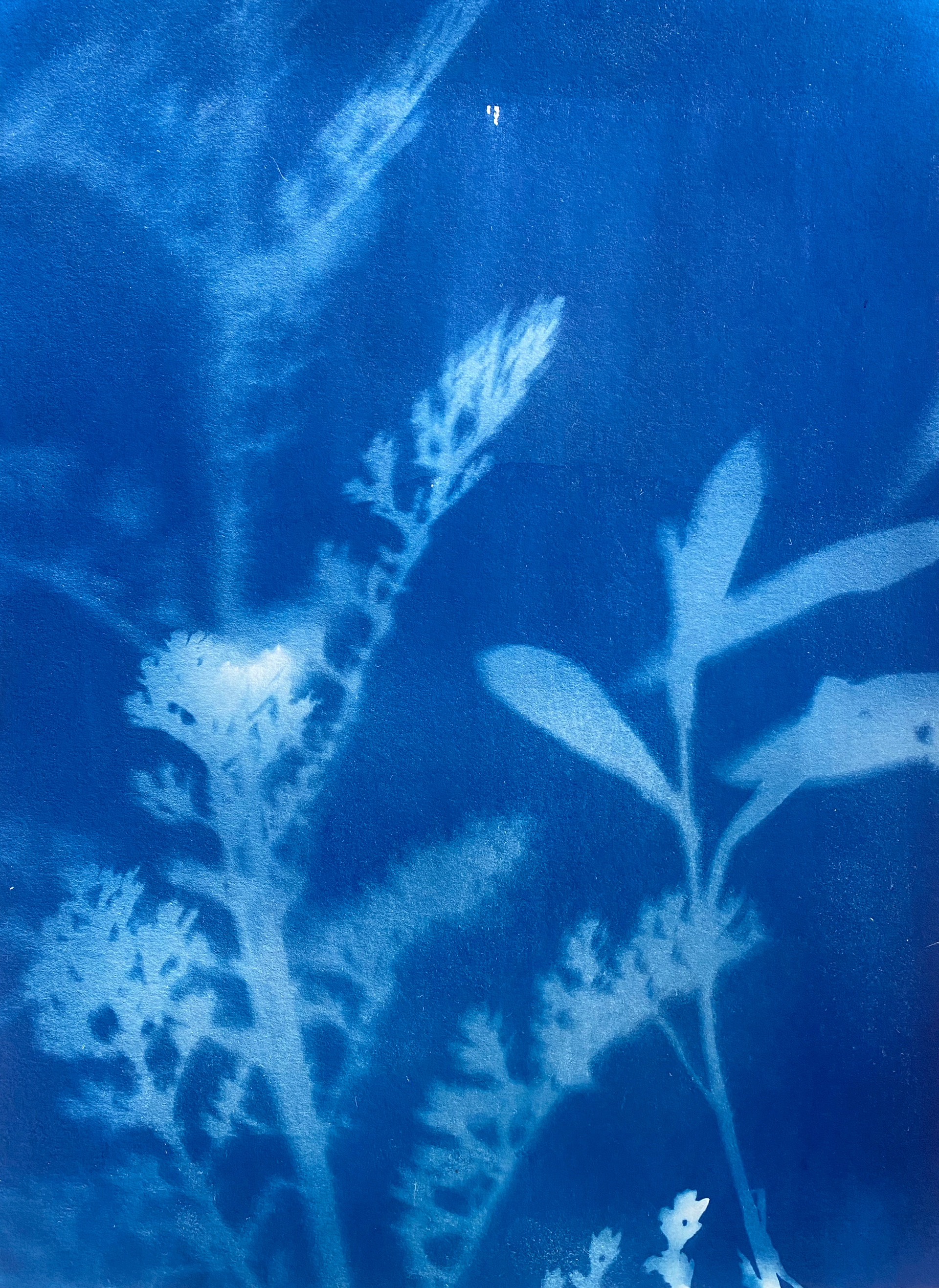 For my work scholarship from the Dormagen Guffanti Foundation, I developed a project with the residents of the center for the disabled that consisted of the photographic printing process cyanotype and classic, analogue photographs. The residents were able to “take a picture” of their surroundings themselves with the help of an easy-to-use film camera. Cyanotypes are photograms in which a carrier material (e.g. paper) is exposed directly using a contact process, without the use of a camera. The works produced using one of the oldest photographic techniques thus depict their own creation process on the surface. The process is based on the most basic elements of photography: an object, light and light-sensitive material. The process can only be controlled to a certain extent, the result depends on the duration of the exposure, the type and amount of UV light and the concentration of the chemical substances. Every print is a surprise, a mystery, unique.